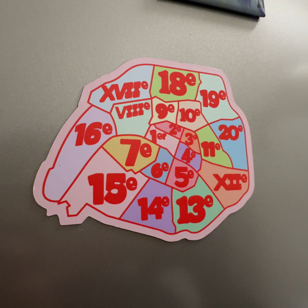 Magnet souvenir pour frigo en forme des arrondissements de Paris. Issu des vidéos YouTube de SalutBrian !